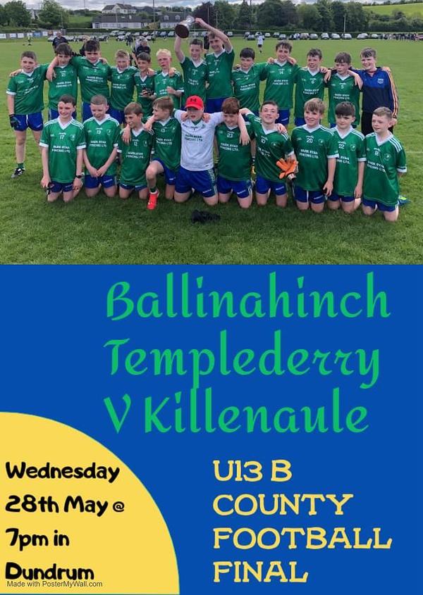 Best of luck to our U13 footballers who take on Killenaule in the county final tomorrow evening in Dundrum at 7pm.